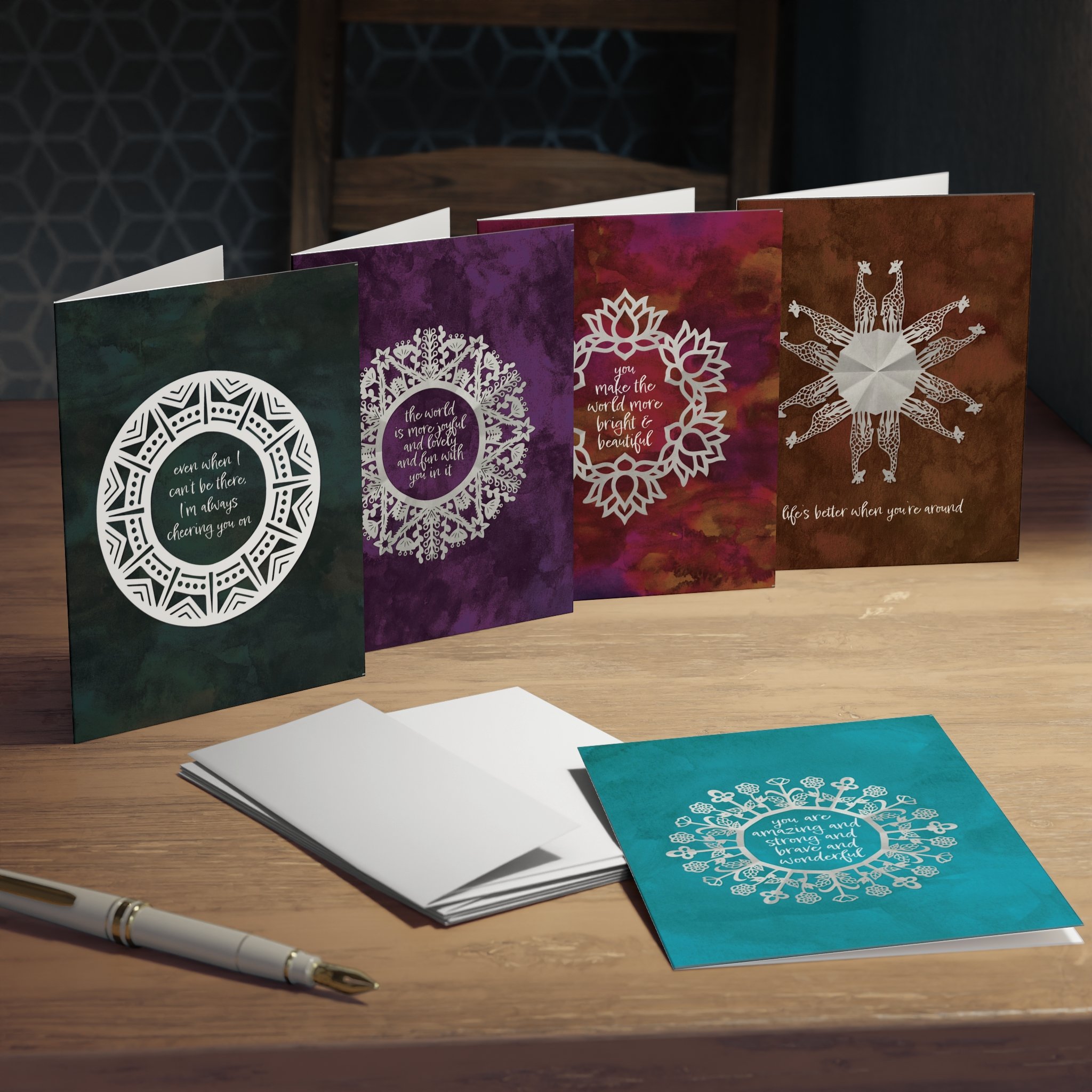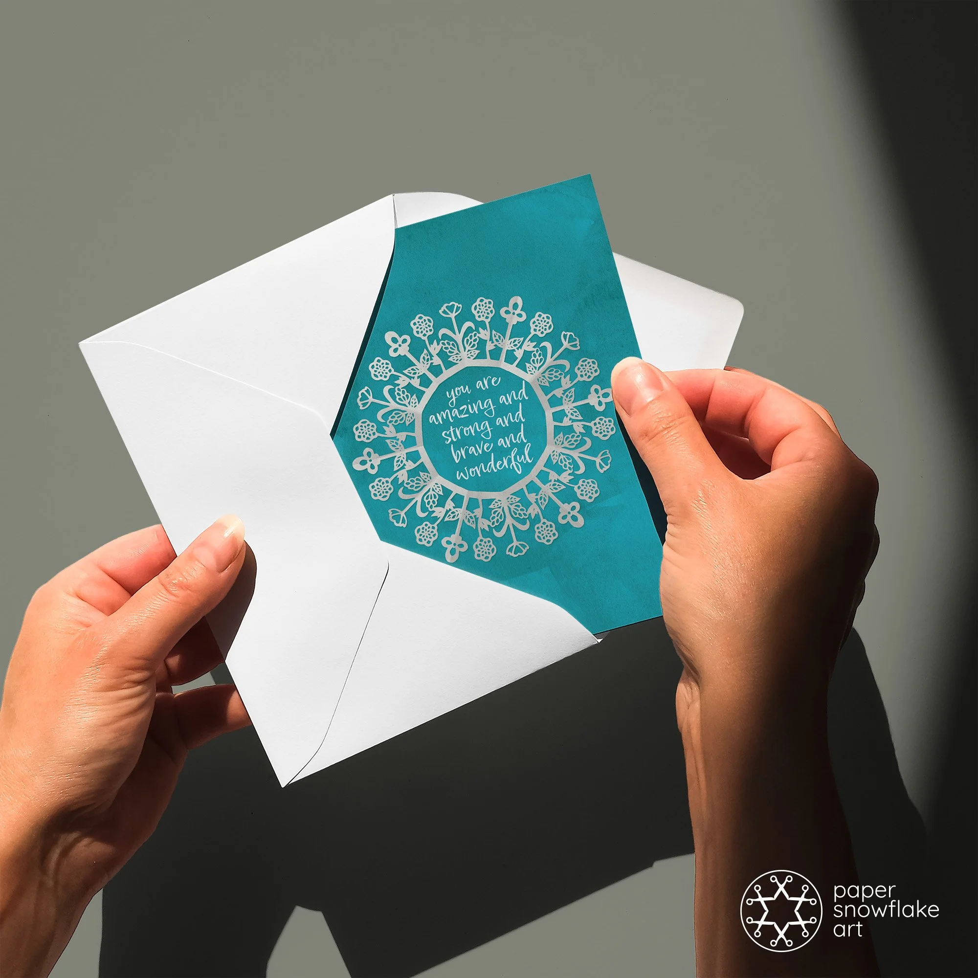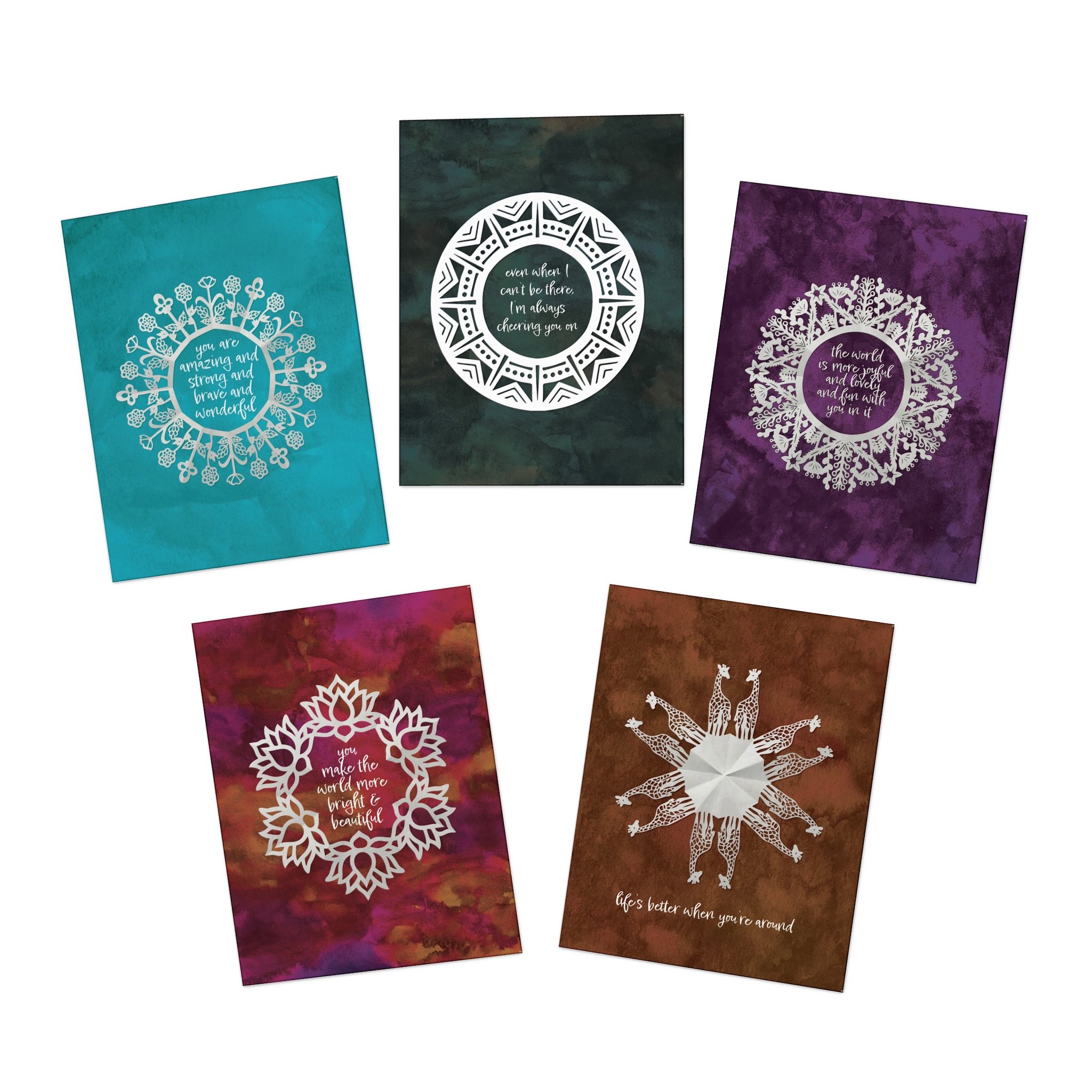 “Lovely cards with a winter theme. Anyone who cut out snowflakes as a child will appreciate these.”