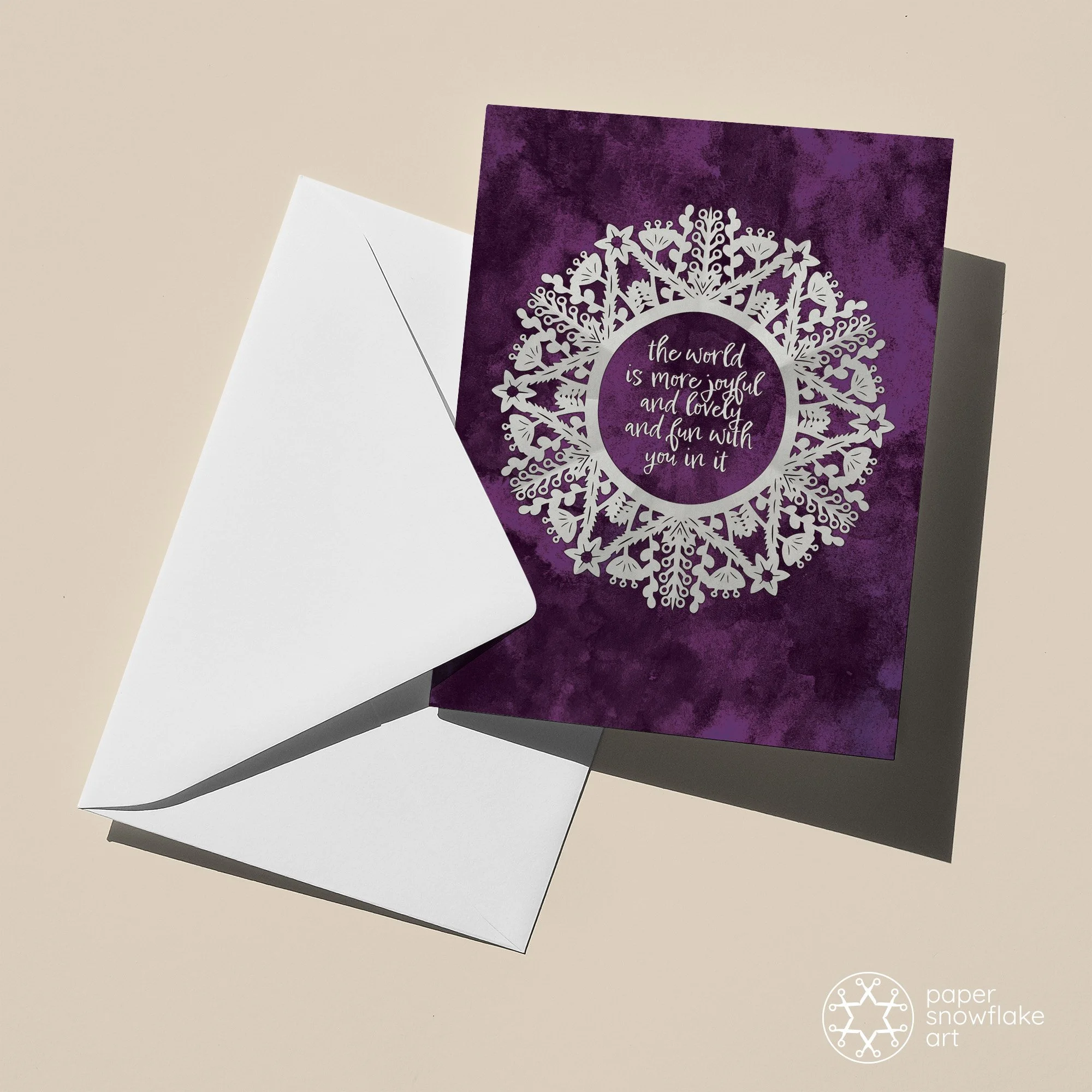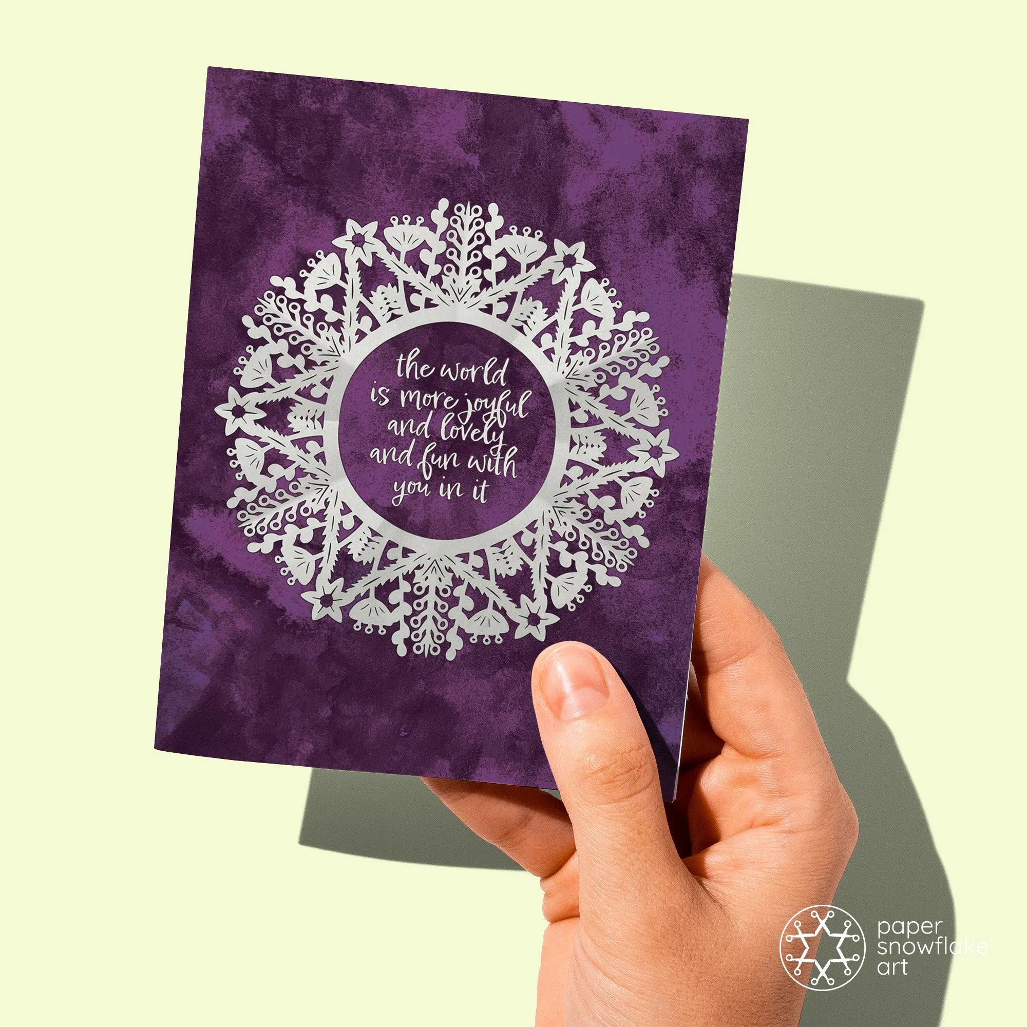 Greeting Cards Categories: All Comfy & Cozy Greeting Cards Snow Globes Ornaments Framed Artwork All / All Comfy & Cozy Greeting Cards Snow Globes Ornaments Framed Artwork Affirmation Snowflake Greeting Cards (Assorted 5-Pack) $23.99 Fun & Travel Snowflake Greeting Cards (Assorted 5-Pack) $23.99 "May your journey have smooth roads and happy memories" greeting cards (8, 16, and 24 pcs) from $23.99 "May you find many simple joys this season" greeting cards (8, 16, and 24 pcs) from $23.99 "May your day have vaca vibes" greeting cards (8, 16, and 24 pcs) from $23.99 "Thinking of you on your next adventure" greeting cards (8, 16, and 24 pcs) from $23.99 "You make the world more bright & beautiful" greeting cards (8, 16, and 24 pcs) from $23.99 "The world is more joyful and lovely and fun with you in it" greeting cards (8, 16, and 24 pcs) from $23.99 "You are amazing and strong and brave and wonderful" greeting cards (8, 16, and 24 pcs) from $23.99 "Life's better when you're around" greeting cards (8, 16, and 24 pcs) from $23.99 "Sorry for what I said when I was crabby" greeting cards (8, 16, and 24 pcs) from $23.99 "May your days be merry & bright" greeting cards (8, 16, and 24 pcs) from $23.99 "Even when I can't be there, I'm always cheering you on" greeting cards (8, 16, and 24 pcs) from $23.99 "Wishing you peace & joy" greeting cards (8, 16, and 24 pcs) from $23.99
