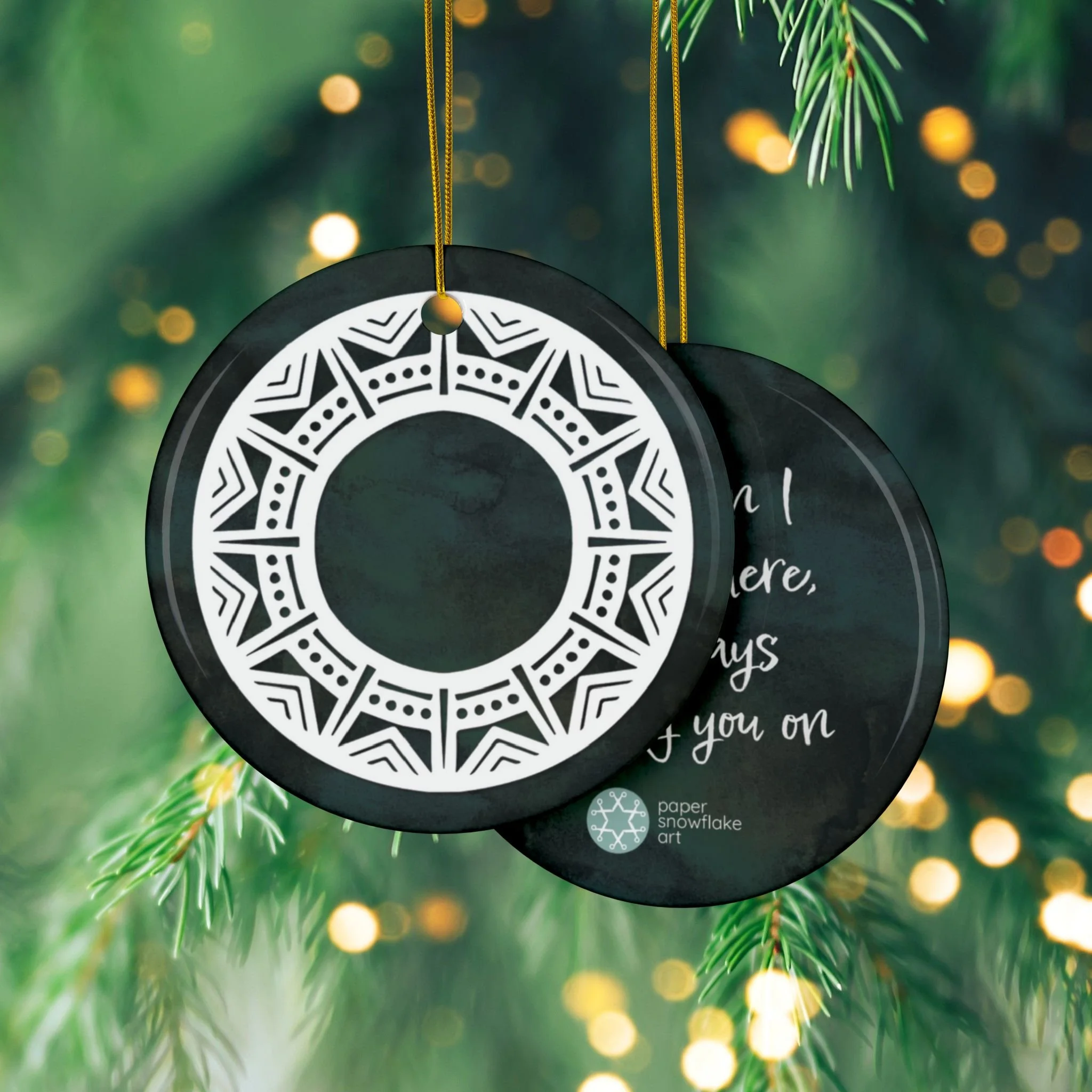 Let your loved ones know you care with this double-sided paper snowflake ceramic ornament that features the quote, "life's better when you're around" on the reverse.
