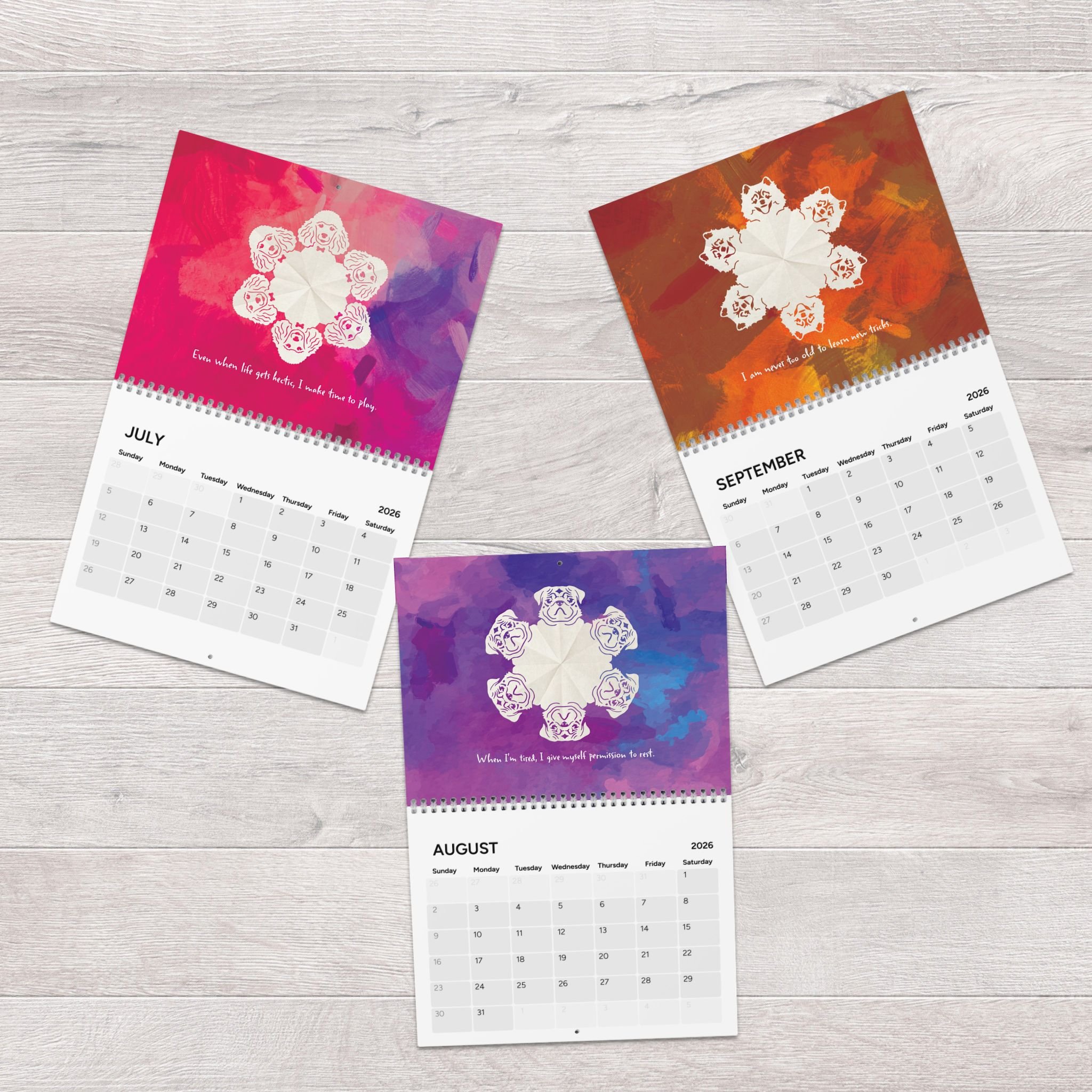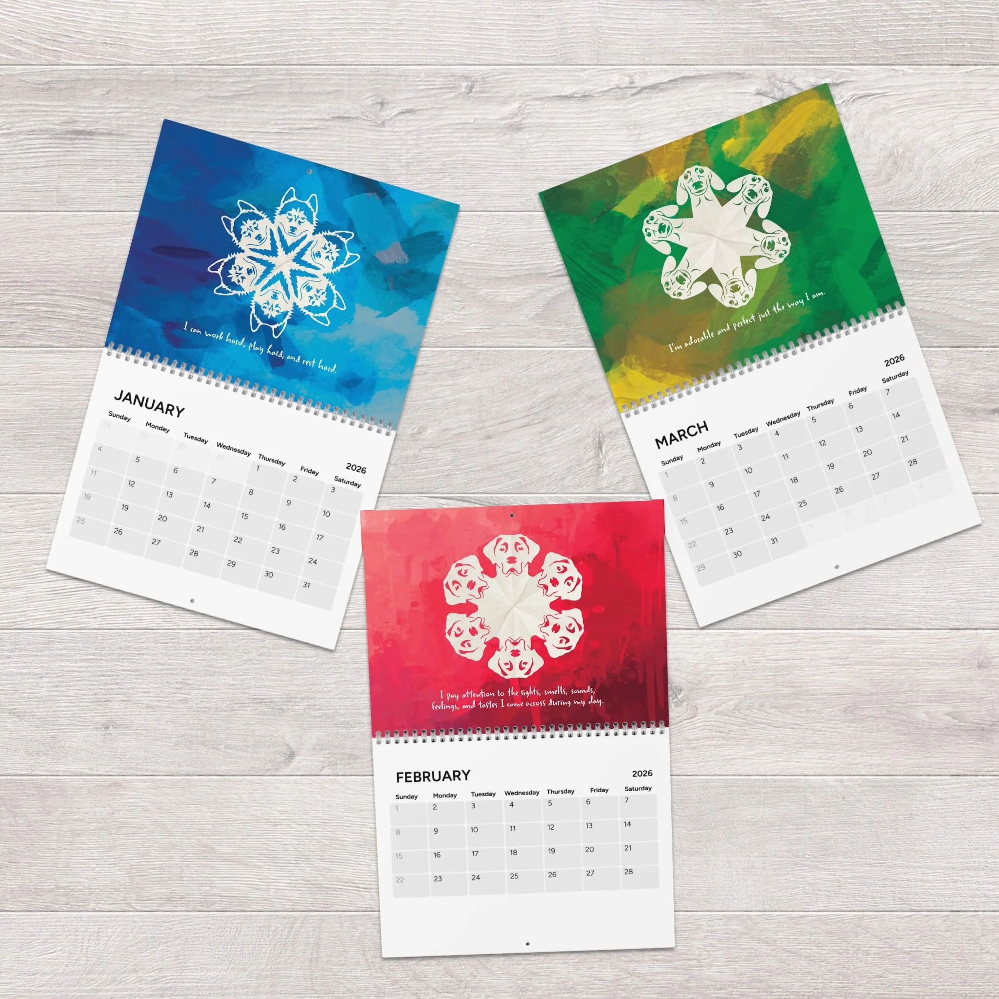 These calendars are a silly passion project that combines three of my favorite things: snowflakes, dogs, and positive affirmations ![]()